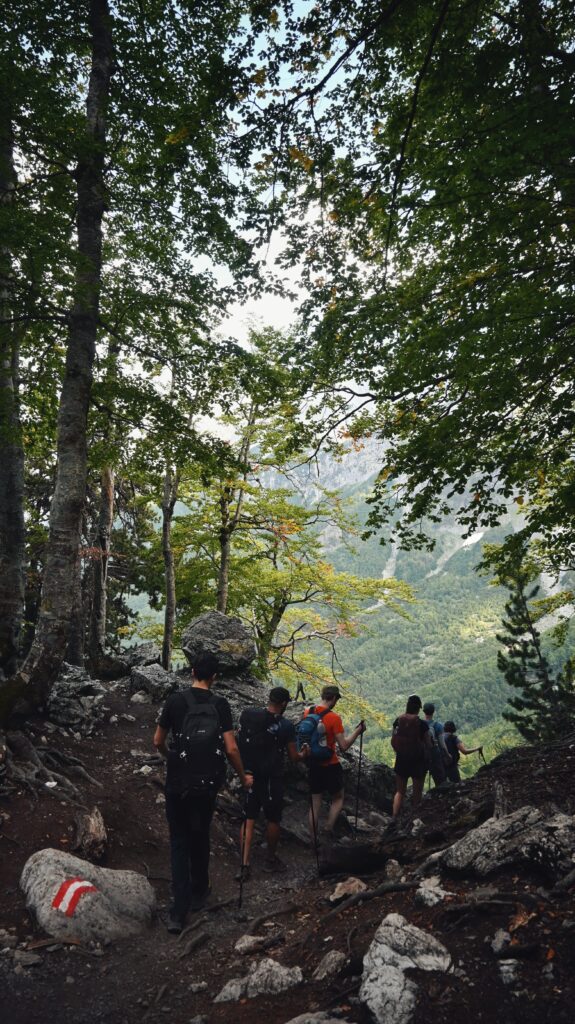 The Peaks of the Balkans trail is a 192-kilometer cross-border hiking route through the Accursed Mountains that connects Albania, Kosovo, and Montenegro.