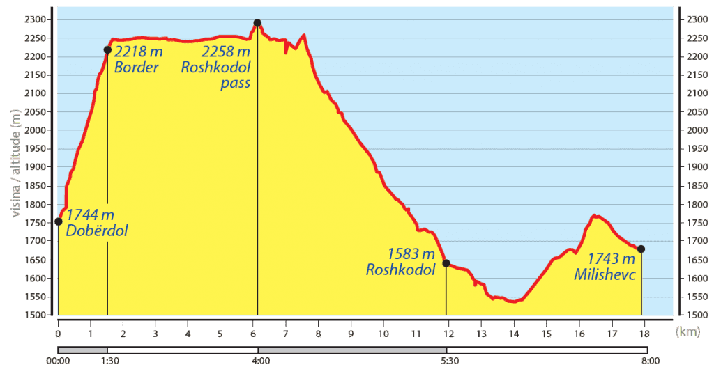 After passing through the seasonal shepherd settlement of Roshkodol, the route follows a dirt track for approximately 4.6 km through pine forest and rugged mountain terrain to the village of Milishevc in Kosovo. Surrounded by dramatic peaks and dense forest, Milishevc offers cozy guesthouses serving traditional Kosovar cuisine and warm mountain hospitality — a well-earned and deeply satisfying end to one of the finest high-alpine stages on the trail.